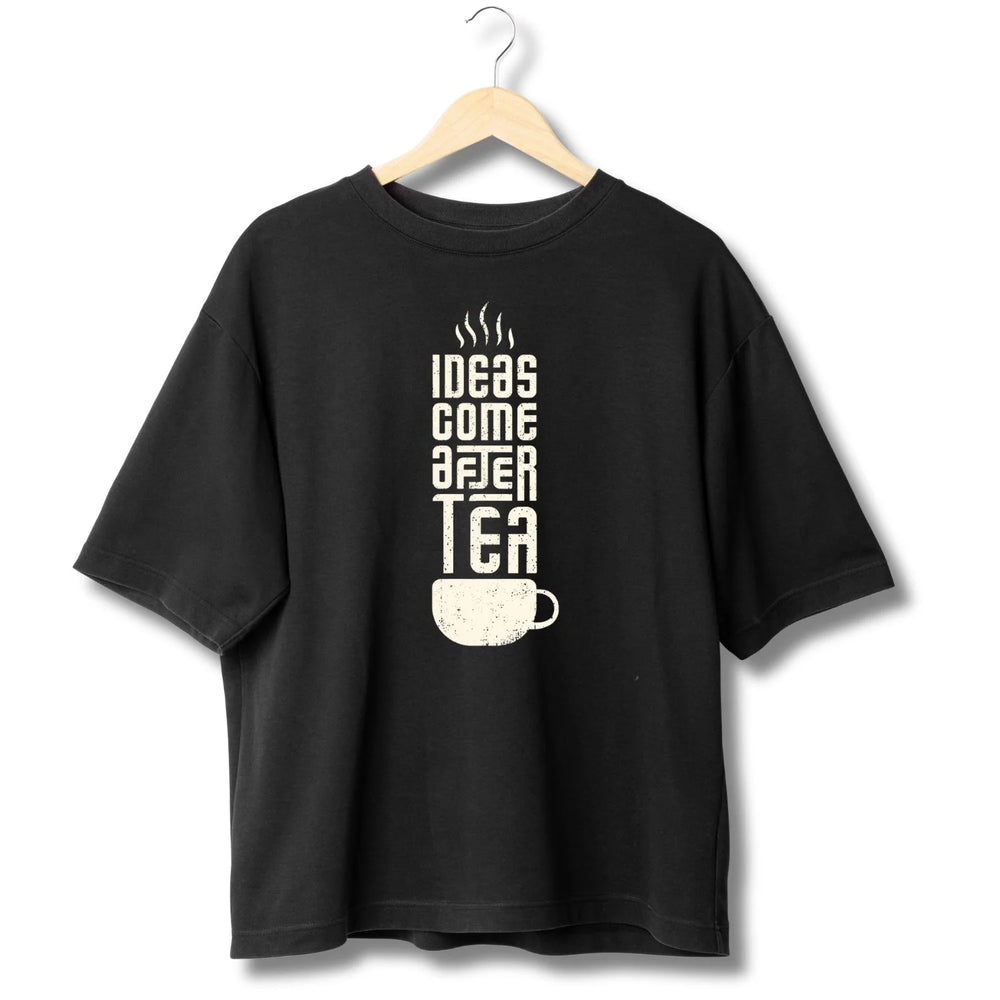 Fuel your creativity with this stylish oversized black graphic tee featuring the witty slogan “Ideas Come After Tea”. Perfect for tea lovers and creative minds, the bold vintage-style print with a steaming cup design adds a cosy yet trendy vibe. Made from soft, breathable fabric with a relaxed oversized fit, it’s ideal for everyday wear, lounging, or casual outings. Pair it with jeans, joggers, or shorts for an effortlessly cool look.